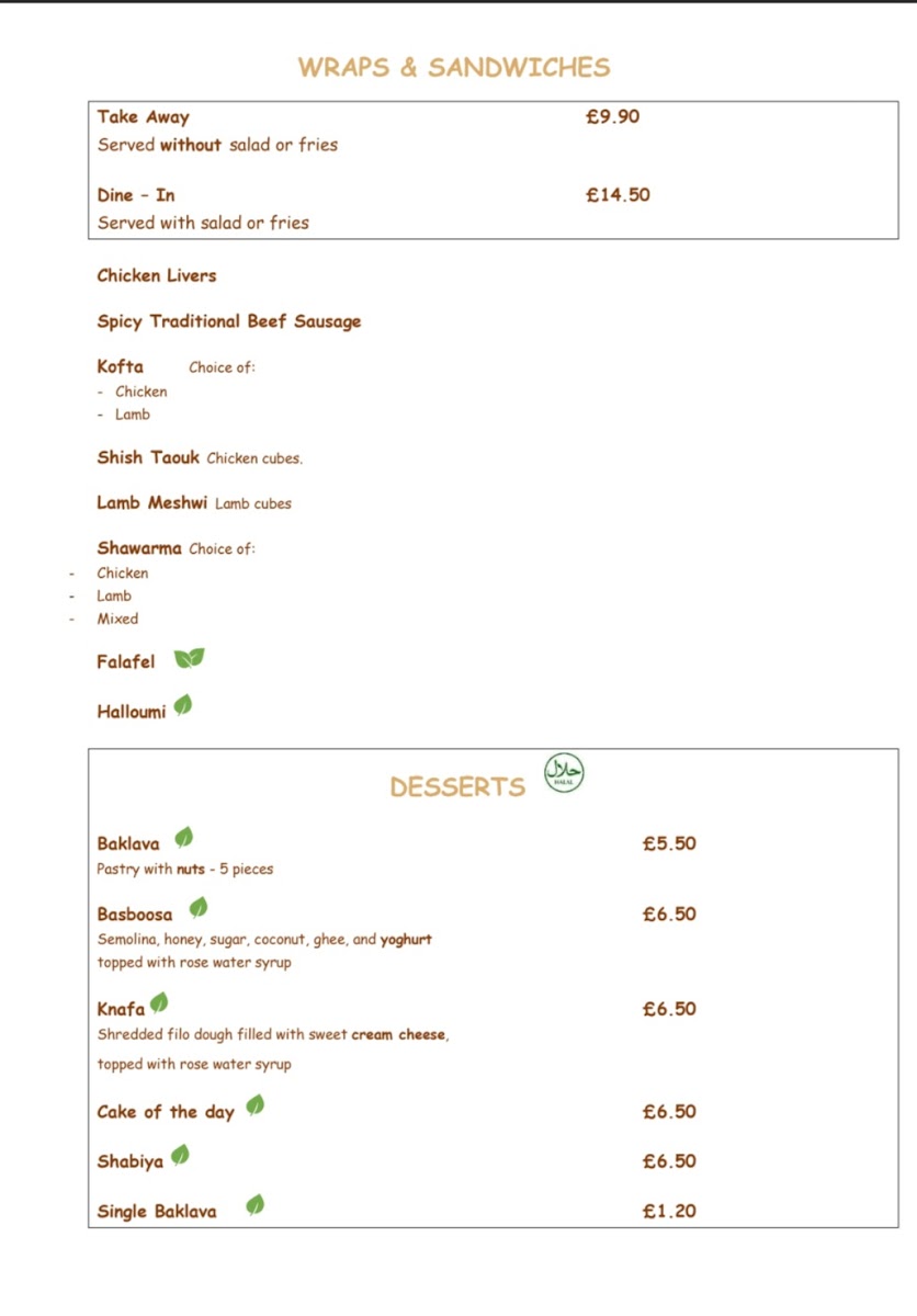 One of the highlights of the menu is the Mezze selection, perfect for those who enjoy a variety of small dishes to share. The hummus, rich and creamy, pairs beautifully with the warm, freshly baked pita. The falafel, crispy on the outside and tender on the inside, is an absolute favorite. The menu also includes a variety of grilled meats, including succulent lamb kebabs and flavorful chicken shawarma, both of which are seasoned to perfection and cooked with skill.